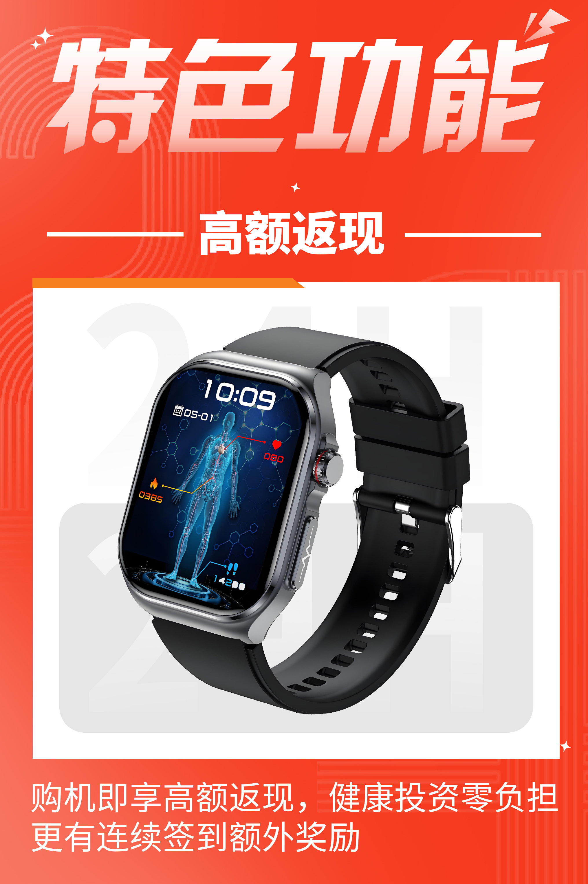 爱诗美智能医疗手表测心电血糖血压尿酸血脂心率皮肤蓝牙健康手表